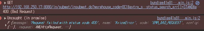 콘솔창을 보니 api에서 400에러가 발생했다.