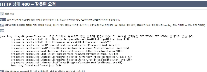 java.lang.IllegalArgumentException: 요청 타겟에서 유효하지 않은 문자가 발견되었습니다. 유효한 문자들