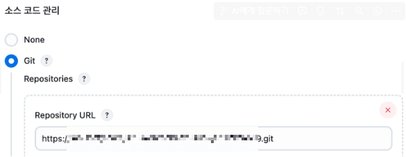 CI/CD를 적용할 깃 레포지토리 주소를 넣어준다.