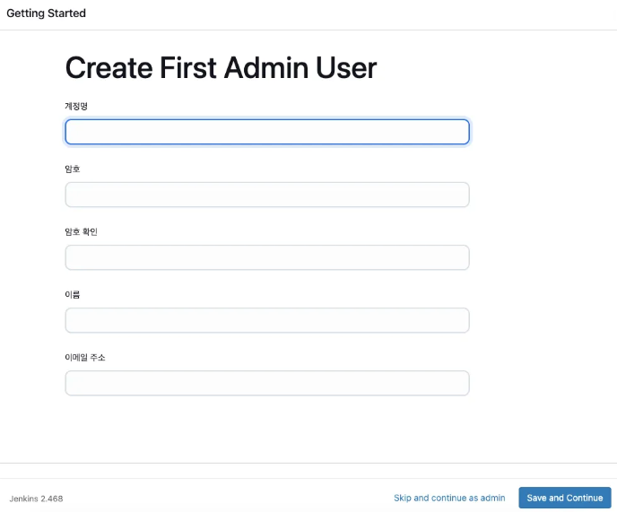 뒤에 나오는 과정들을 따라 플러그인 설치를 하고 admin계정을 만들어 주면 된다.