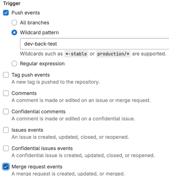 빌드 트리거는 원하는방법으로 하고 고급 탭 안에 있는 secret token generate 후 복사 해두기