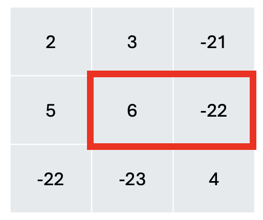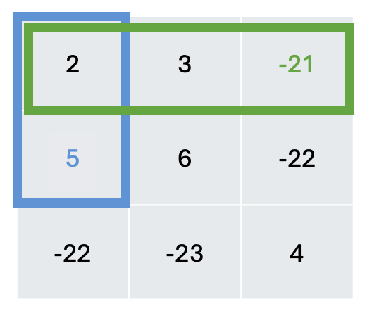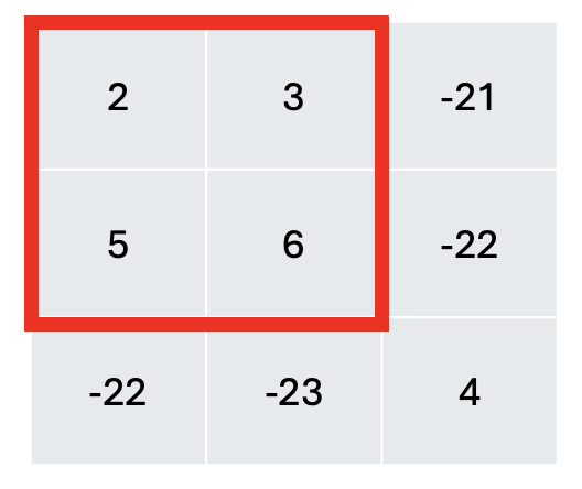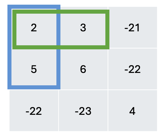 [1][2]부분의 누적합에서 초록색과 파란색으로 표시한 숫자 부분의 누적합을 빼면 구할 수 있다.